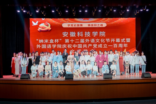 5月30日晚,完美app官方在线入口“纳米盒杯”第十二届外语文化节开幕式暨庆祝中国共产党成立一百周年文艺晚会在大学生活动中心举行。校党委委员、宣传(统战)部部长卫胜,国际交流与合作处处长、港澳台事务办公室主任刘东楼,教务处处长、创新创业学院院长俞浩,党委学工部部长、学生处处长何永勇,校团委书记黄立义,招生与就业工作处副处长、招生办公室副主任、校友工作办公室主任何晓冬,外国语学院院长陈德用、党委书记蔡为青、副院长刘萍、党委副书记张海亮出席开幕式。开幕式由蔡为青主持。