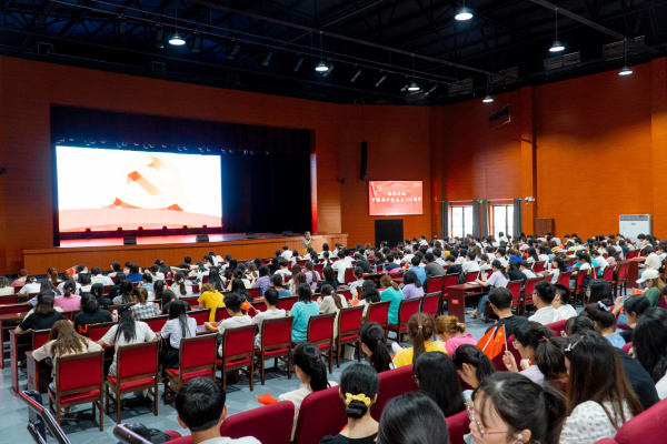 7月1日下午,外国语学院党委组织师生在校大学生活动中心集中观看庆祝中国共产党成立100周年大会视频。学院党委书记蔡为青、党委副书记张海亮、党政办主任陈慧中、团委副书记宋兵兵和学院在校学生500余人共同参加活动。活动由张海亮主持。