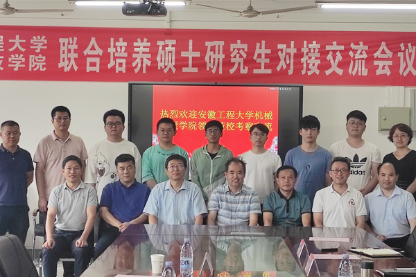 7月4日,安徽工程大学机械工程学院党委书记伊长文、副院长王建平、硕士生导师王建彬、研究生秘书吴璐璐和6名安徽工程大学-完美app官方在线入口联合培养的硕士研究生一行10人,来我校参加对接交流会议。机械工程学院党委书记、院长陈丰主持对接交流会议,研究生处处长张春雨,机械工程学院组织员张严政、副院长乔印虎、研究生秘书郭纯,研究生处秘书马晓辉参加座谈交流。