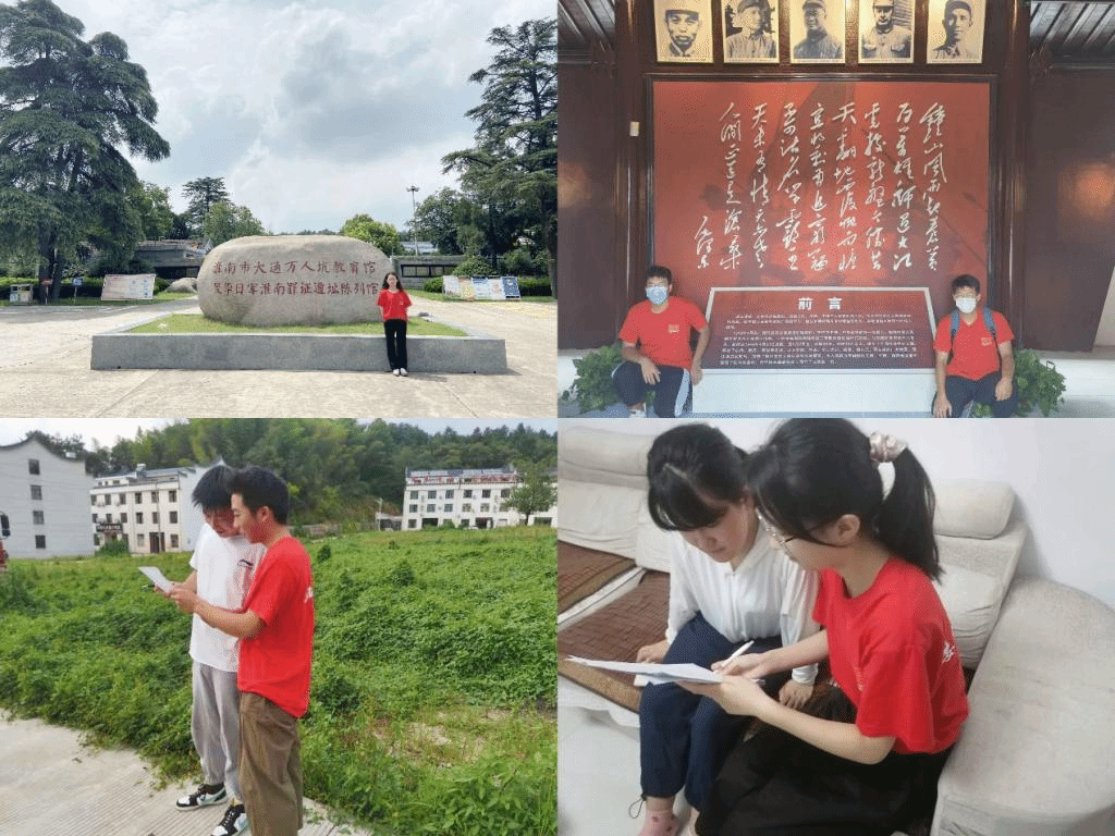 队员们分别前往当地的红色革命基地。在渡江战役总前委旧址纪念馆,队员们了解到英勇无畏的解放军战士们克服万难,前赴后继,取得了渡江战役的胜利,为后来新民主主义革命的胜利打下了坚实基础。在杨业功纪念馆,队员们深入了解杨业功的英雄事迹,了解到“他用尺子丈量自己的工作,用读秒计算自己的生命。未曾请缨提旅,已是鞠躬尽瘁”的含义。在淮南市大通万人坑教育馆、侵华日军淮南罪证遗址陈列馆,队员们更加清晰地认识到何为“忘记就是背叛”。面朝湖州烈士陵园、钱壮飞纪念馆,队员低头肃立为革命烈士默哀一分钟,“革命烈士永垂不朽”八个金色大字让队员为之震撼。而望向金寨刘邓大军挺进大别山博物馆,当看到“老乡不在家,开门就犯法”的对联时,队员从而悟出当年就是因为刘邓大军有严明的纪律,才为革命取得胜利奠定了坚实基础。