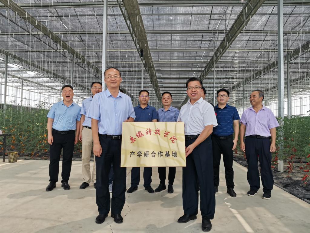 8月18日上午,何世潮一行在阜阳市颍东区二级巡视员王雷和颍东区委常委、副区长程传雷等的陪同先后考察了安徽瓦大现代农业科技有限公司、阜阳市立华畜禽有限公司和颍东区插花镇杨桥居委会,并进行了座谈。在座谈交流会上,瓦大集团总经理刘志才和立华公司总经理牛洪波分别介绍了各自的公司现状、企业文化、发展规划、人才需求和项目合作需求等方面情况,省财政厅下派干部、颍东区插花镇杨桥居党总支第一书记徐进超介绍了颍东区插花镇杨桥居委会基本情况、开展的工作、存在的问题和未来的展望。何世潮和崔广荣介绍了学校及学院师资队伍、人才培养和社会服务等情况,他们表示,学校始终坚持走政产学研融合之路,努力将科研成果转化到实际生产,为企业科研成果运用提供强有力的支撑。瓦大集团与完美app官方在线入口合作的“产学研合作基地”和“校外实习实训基地”揭牌仪式在瓦大番茄谷隆重举行。崔广荣与颍东区插花镇党委副书记、镇长张勇座谈会后签订了政产学研合作协议。