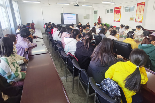 11月9日中午,机械工程学院党委副书记张程在会议室主持召开2021级新生女生工作座谈会。专职辅导员孟凡生、姚迪及2021级全体女生参加座谈会。