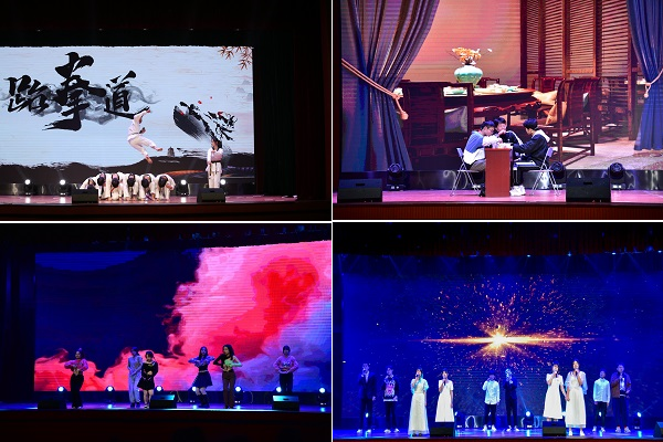 第二篇章中,跆拳道《少年志》,展示了青年学子的青春风采;情景剧《校园贷》贴近生活,给大家带来欢乐的同时,告诫大家远离校园贷;爵士舞串烧《Iridescent》以青春洋溢、动感十足的表演诠释青年学生的活力与激情,让在场观众们不断欢呼赞叹;《唱响新时代》的联唱,传递着动科学子的拳拳爱国心;朗诵《写给未来的你》,学生以铿将有力的语调,表达了新青年与国同行、振兴中华的态度与决心。