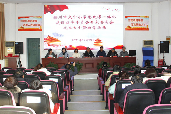 12月29日,滁州市大中小学思政课一体化建设指导委员会成立大会暨思政课展示交流研讨会召开。市委教体工委副书记杨洲出席会议并讲话。市大中小学思政课一体化建设指导委员会组长、市思政学科教研员张作真主持会议。我校马克思主义学院院长张德化应邀参加会议并做主旨报告。市大中小学思政课一体化建设指导委员会全体成员及部分思政课教师代表参加会议。