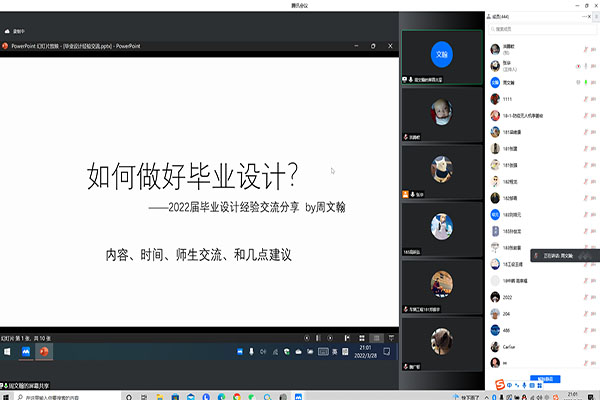 3月28日20:00至21:30,机械工程学院采取线上会议的形式召开2022届毕业生及指导教师工作会议,部署推进毕业生毕业设计、就业、考研以及调剂等问题。机械工程学院党委书记、院长陈丰,党委副书记张程,党委委员、副院长张华,毕业设计秘书蒋忠愉以及全体2022届毕业生和毕业生指导教师450余人参加会议。会议由张华主持。