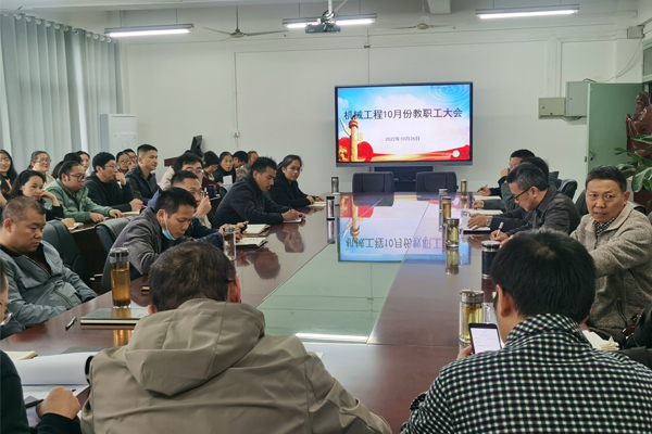 为推动全体教职工深入学习贯彻党的二十大精神,持续推进学院各项重点工作,高质量完成年度目标任务,2022年10月26日下午,机械工程学院在笃行楼409会议室召开10月份全体教职工大会。会议由党委书记、院长陈丰主持。