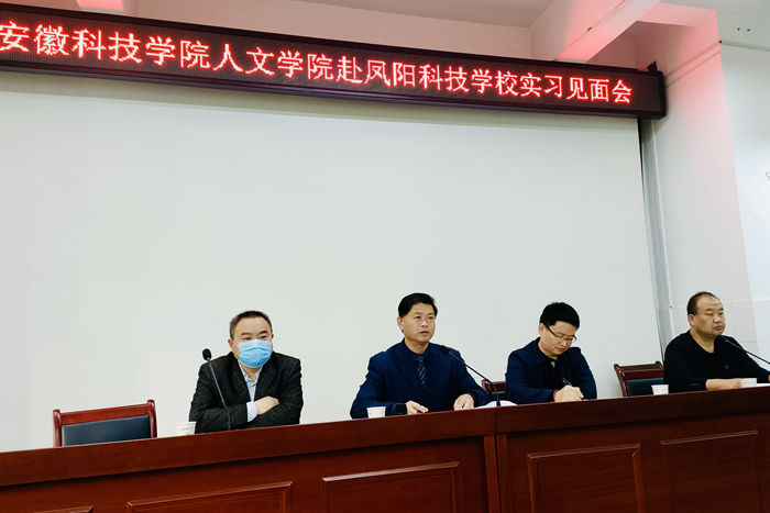 人文学院副院长牛永辉介绍了人文学院的基本概况及汉语言文学专业教育实习安排,并要求实习学生做到:明确目的,端正态度;服从管理,尊重导师;严于律己,以身作则。他指出,实习生在做好疫情防护和个人安全的前提下,要珍惜本次实习机会,虚心请教学习,认真完成实习任务,切实提升教学基本功和班级管理能力。会后,凤阳科技学校安排实习指导老师和实习生进行对接。