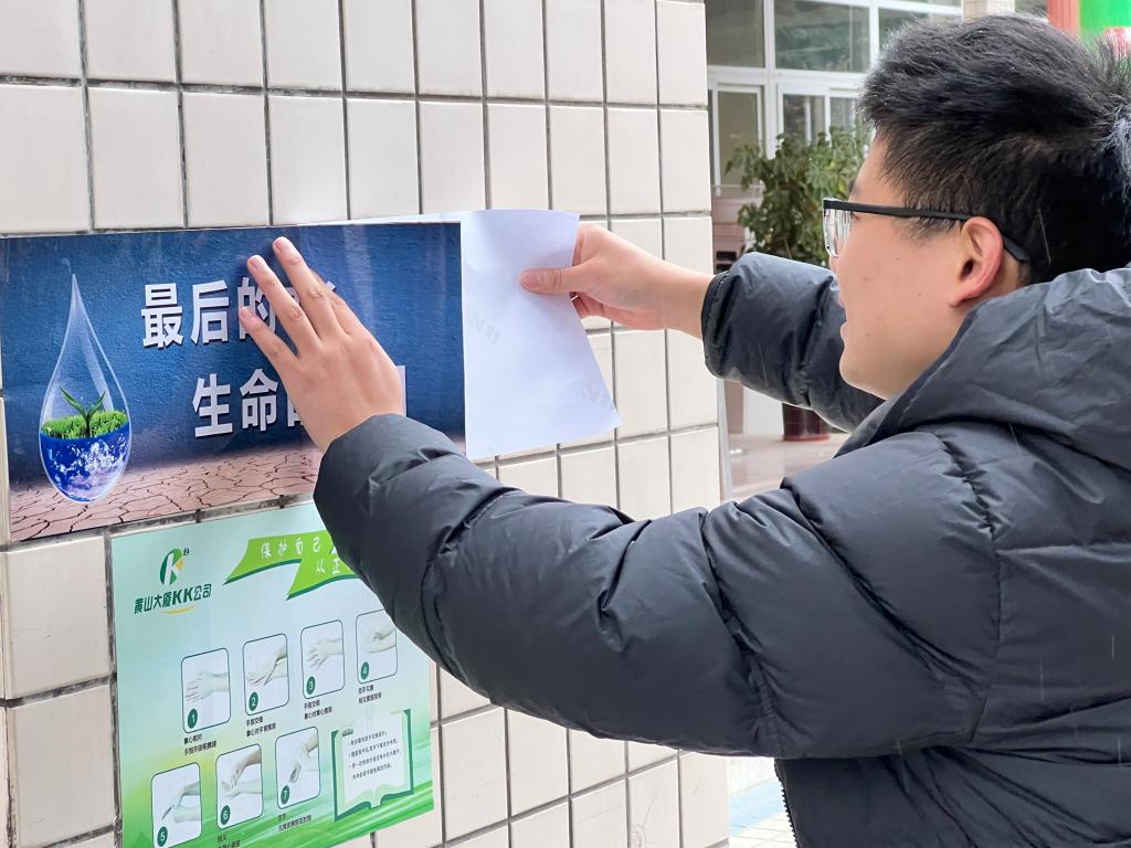 宣讲结束,志愿者们在校园的办公楼、教学楼等各个角落张贴环保宣传标语,在全校范围内营造浓厚的绿色环保氛围。
