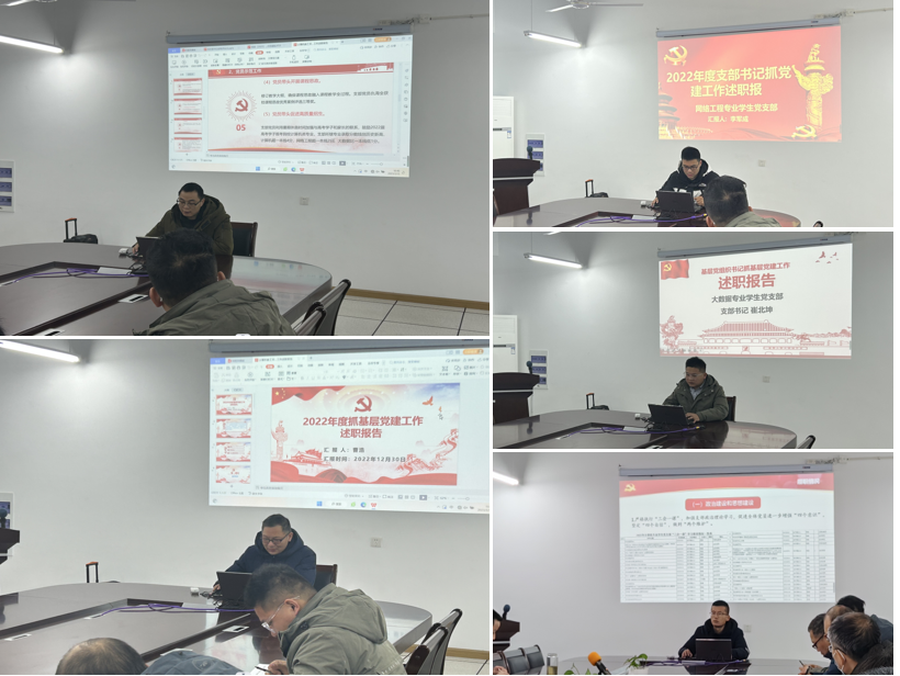 会上,王振其介绍了关于2022年度基层党组织书记抓党建述职评议考核的主要内容、考核要求和考核方式。学院五个党支部书记从履职情况、存在不足和原因分析以及下一步工作思路等方面,对2022年度基层党支部工作进行了述职汇报,总结了成绩清单、查找了问题清单、制定了任务清单。