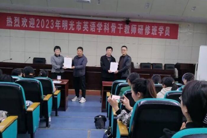 4月11日下午,由外国语学院承办的2023年明光市小学英语骨干教师研修班结业仪式在学校图书馆一楼报告厅举行。来自明光市33所小学的62名小学英语骨干教师完成为期4天的集中研修学习,顺利结业。仪式由外国语学院院长刘萍主持,刘萍与副院长洪民共同为参加研修的教师颁发结业证书。