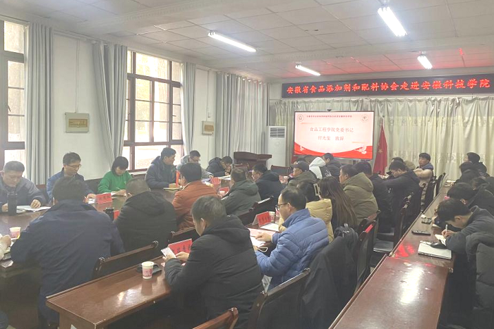 12月22日,食品工程学院食品营养与安全系教工党支部在凤阳校区举办了“安徽省食品添加剂和配料协会走进完美app官方在线入口”活动。食品工程学院党委书记付光玺,院长杜传来应邀出席。会议由协会秘书长杨文明主持。