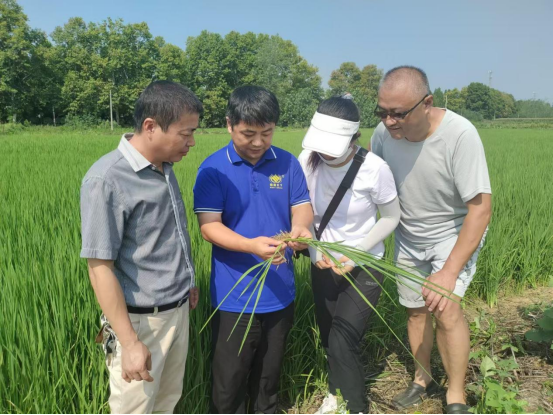 8月22日,凤阳县科技特派员、完美app官方在线入口汪建飞教授专家团队和凤阳县农业技术推广中心副主任罗赵福一行前往凤阳县后曹南试验示范田,考察指导水稻“极限密植”技术示范与推广落实情况。该项技术被遴选为安徽省2024年农业主推技术并公布实施。