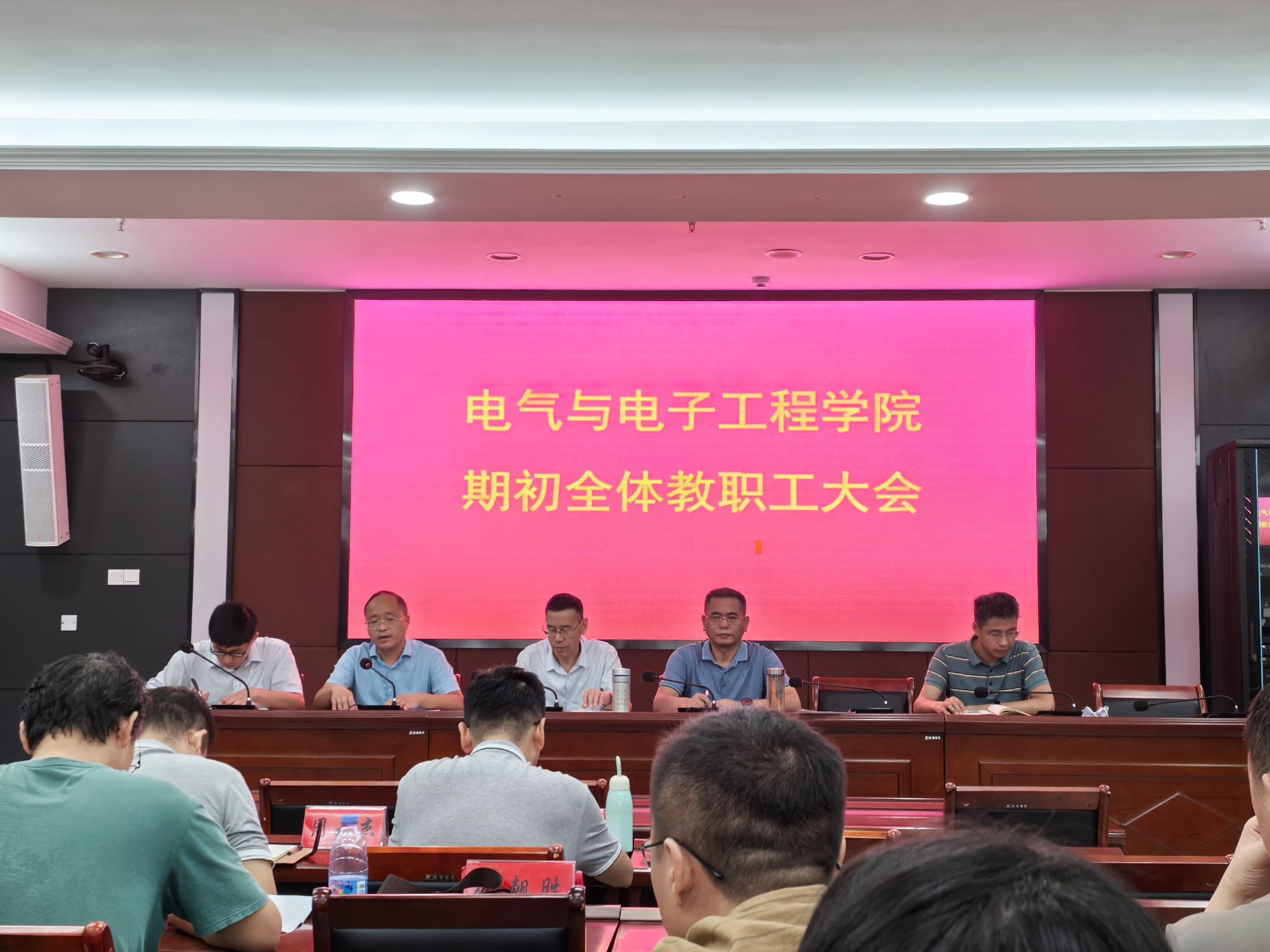 8月30日上午,电气与电子工程学院在西辅楼111会议室召开新学期全体教职工大会,学院党政领导及全体教职工参加了会议,会议由党委书记骆海邦主持。