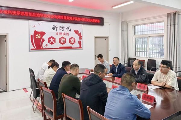 10月15日,智能制造学院党委书记姚勇带领副院长乔印虎、王晴晴和杨星两位博士一同到凤阳县黄湾乡吴窑村开展党组织共建与定点帮扶工作。黄湾乡乡长曹旭,党委副书记姜超,党委组织委员严妍,部分村干部及驻村工作队参加活动,吴窑村第一书记、驻村工作队队长宛传平主持活动。