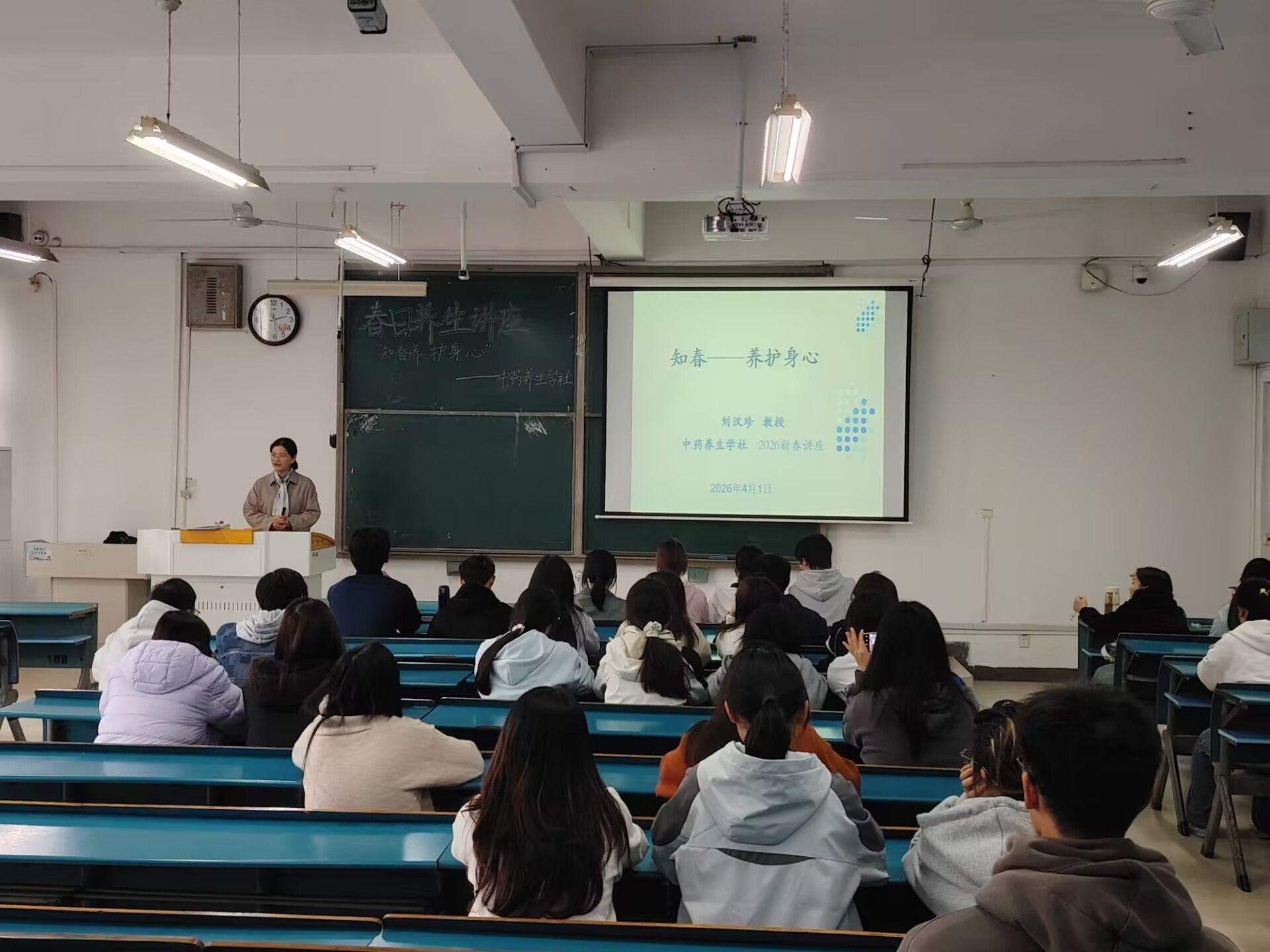 讲座中,刘汉珍教授紧扣春季“肝木克脾土”的中医核心原理,以“养肝、养脾、养神”三大要点为核心,为在场师生系统讲解了春日全维度科学养生方案。饮食调养方面,她依据“青色入肝”“省酸增甘”的中医理念,推荐菠菜、芹菜等应季养肝食材,山药、小米等健脾食材,并分享了适配校园作息的玫瑰花茶、菊花枸杞茶、酸枣仁茶三款安神茶饮;衣食住行方面,她围绕“春捂秋冻”原则给出腰腹、脚踝重点保暖的实用建议,同时强调要规律三餐、少食生冷油腻、保持宿舍通风干燥、杜绝熬夜,推荐散步、八段锦等温和运动助力气血通畅。