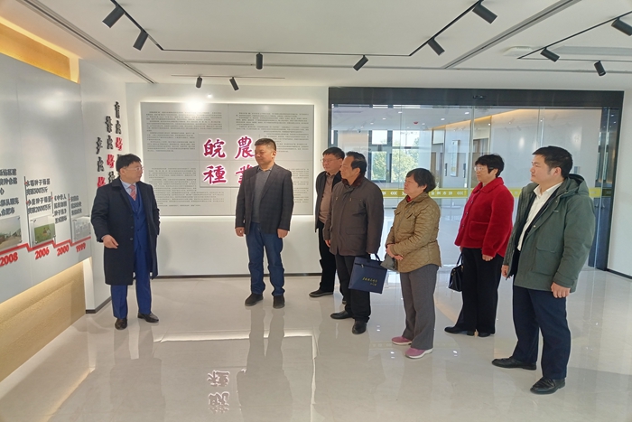 老教师们参观了皖农种业良种展览大厅,并与校友们举行了座谈会。张道田详细介绍了皖农种业的发展历程,讲述了自己二十多年来,在种业道路上创业的艰辛。在种业人才的聘用上高度赞扬了我校毕业生能吃苦,肯奋斗的敬业精神。杨秀军简要介绍了学校发展及校关工委工作情况,校友们对母校的快速发展深感振奋,并表示给予力所能及的支持。