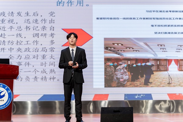 为深入贯彻落实习近平新时代中国特色社会主义思想和习近平总书记关于深化思政课改革创新的重要指示精神,切实推进“大思政课”建设,充分发挥思政课立德树人关键课程作用,根据《中共安徽省委教育工委关于组织开展大学生讲思政课活动的通知》要求,学校广泛组织开展大学生讲思政课活动。5月21日,学校首届大学生讲思政课比赛展示活动在龙湖校区和凤阳校区举行,学校党委委员、副院长黄远友亲临活动现场并观看讲课比赛,喜迎党的二十大胜利召开。