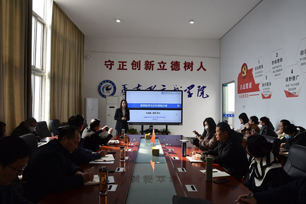 为推动学院思政课程教学案例建设,探索案例教学。2023年3月1日,学院邀请安徽财经大学工商管理学院副院长杜晶晶教授作题为“案例教学与示范课程分享”的学术报告。党总支副书记、院长张德化、副院长张栋出席活动。报告会由学院党总支书记杨仕勇主持。全体教师和小岗干部学院部分教师聆听报告。