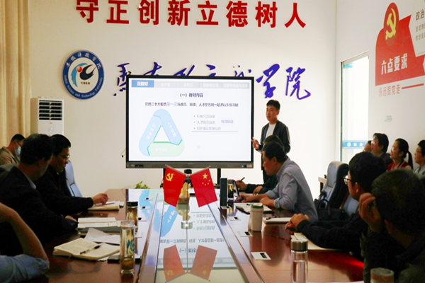 刘阿磊老师、王继涛老师、王丽萍老师和赵庆灿老师依次对四个主题“开辟马克思主义中国化时代化新境界”“加快建设教育、科技、人才强国”“中国经济行稳势升”“以新安全格局保障新发展格局”进行了教学说课展示。杨仕勇、王方友、王维美、赵仁青等老师,从环节、内容、进程等教学方面进行了点评。