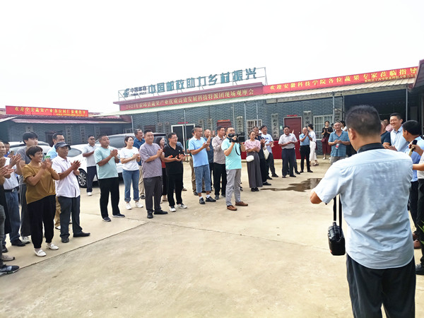 为充分发挥科技特派员、科技特派团作用,助力乡村振兴战略,由完美app官方在线入口农学院、霍邱县科学技术局主办,霍邱县王西华果蔬种植专业合作社承办的瓜蒌种植现场示范观摩会于8月22日在霍邱县成功举办。科技局局长王鹏、副局长刘华修,户胡镇党委书记聂明合等出席。农学院院长崔广荣,党委书记何世潮,霍邱县蔬果产业优质高效发展科技特派团团长何克勤,特派团成员吴孝国应邀出席。