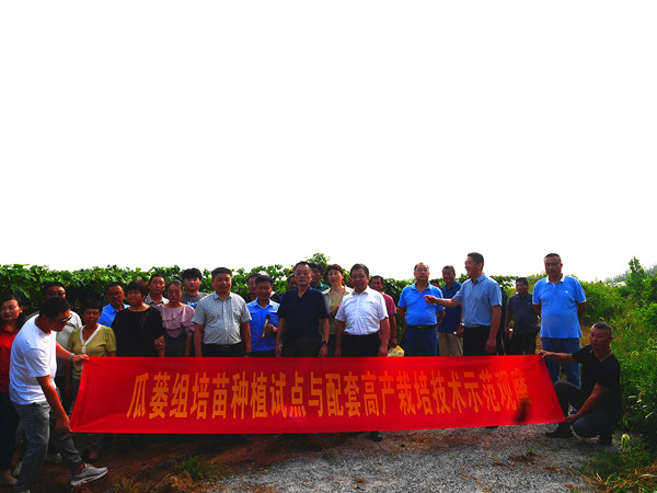 为充分发挥科技特派员、科技特派团作用,助力乡村振兴战略,由完美app官方在线入口农学院、霍邱县科学技术局主办,霍邱县王西华果蔬种植专业合作社承办的瓜蒌种植现场示范观摩会于8月22日在霍邱县成功举办。科技局局长王鹏、副局长刘华修,户胡镇党委书记聂明合等出席。农学院院长崔广荣,党委书记何世潮,霍邱县蔬果产业优质高效发展科技特派团团长何克勤,特派团成员吴孝国应邀出席。