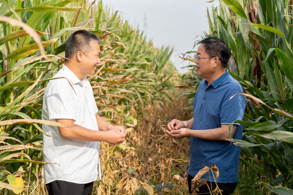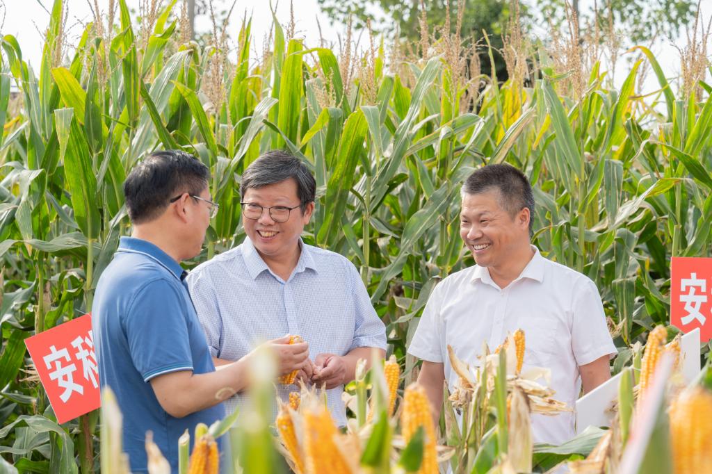 现场观摩会前,玉米科技创新团队成员张子学教授向参会人员进行“玉米新品种安科985特征特性及配套栽培技术”培训。(特约通讯员:汪道兵 摄影:李涛 审核:李文阳 )
