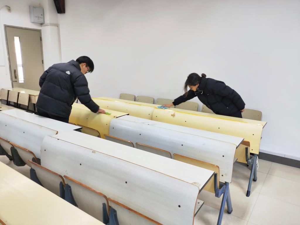 为营造良好的上课环境及创建文明校园,同时培养大学生爱护校园环境,从我做起、从小做起的风貌。11月25日农学院组织学院第59期入党积极分子分别深入新知楼AB等教学楼开展了“我为同学做实事”清洁教学楼活动。农学院辅导员吴荡莅临活动现场指导。