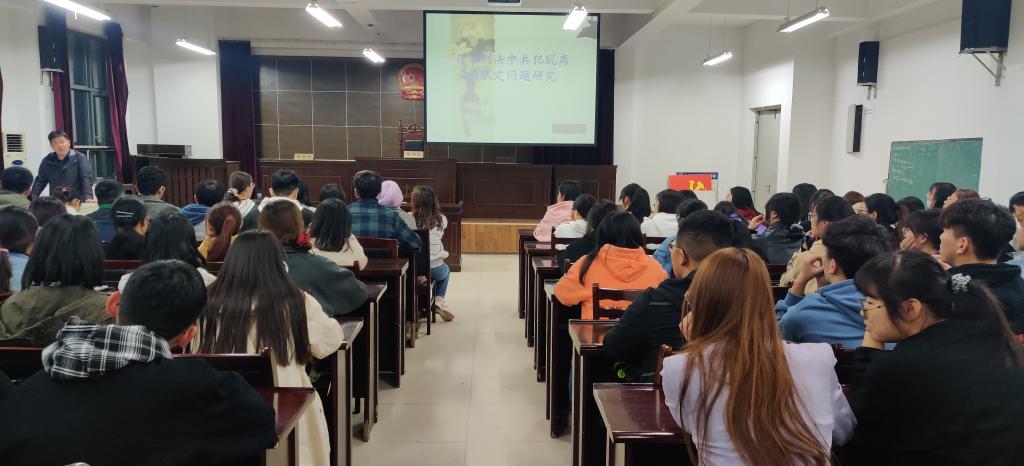 11月4日晚,应人文学院邀请,淮北师范大学政法学院刑法博士王银河,在人文学院模拟法庭举办《日本刑法中共犯脱离的认定问题研究》专题法治报告。法学专业学生到场聆听,并与王银河进行交流讨论。报告由人文学院模拟法庭主任宣刚教授主持。