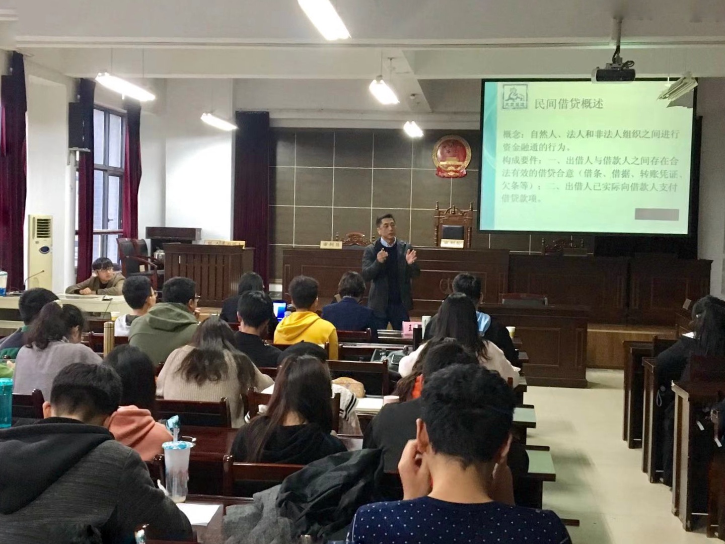 11月17日下午,“知秋杯”第一届完美app官方在线入口法治论坛系列活动——“以案说法”在模拟法庭举办。安徽大友昱达律师事务所执行主任杨根宝作“民间借贷纠纷实例分析”主题报告。安徽大友昱达律师事务所律师王苏敏、安娟、黄娜、潘亮等受邀出席。活动由人文学院院长助理骆绪刚主持。