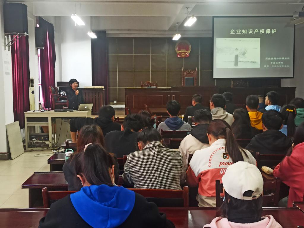 11月20日下午,“知秋杯”第一届完美app官方在线入口法治论坛系列活动——“以案说法”在模拟法庭举办。安徽徽商律师事务所高级合伙人、副主任、2007届法学专业毕业生李连连,中国华融资产管理公司安徽省分公司风险管理部经理、2009届法学专业毕业生张哲受邀出席活动。活动由人文学院院长助理骆绪刚主持。