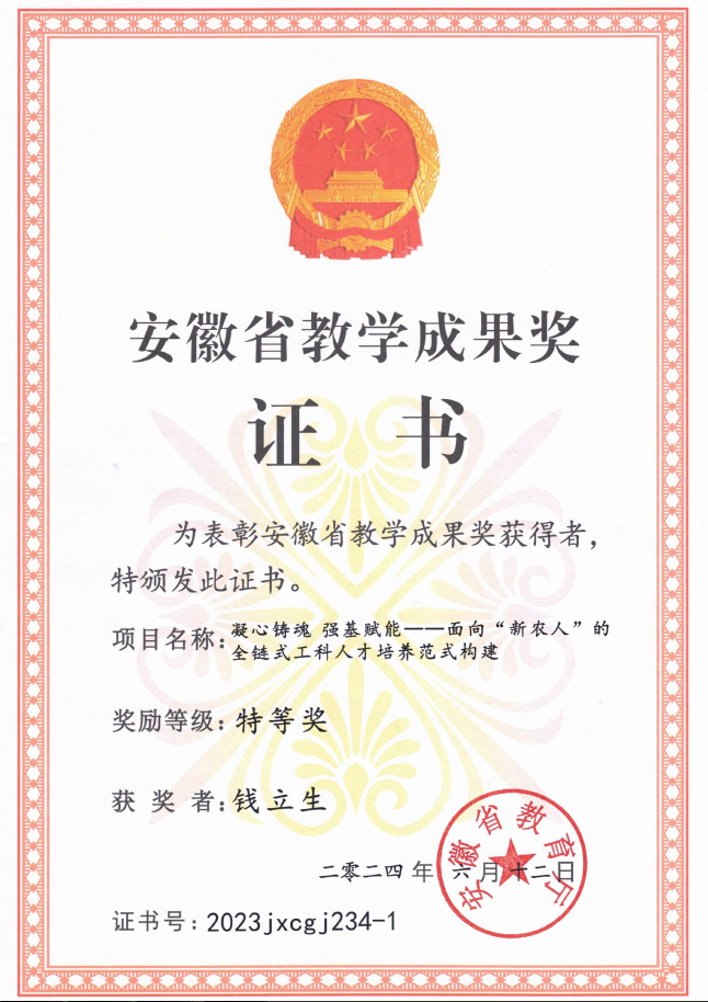 科学研究:近五来,学院共承担各类科研项目60多项;在国内外各类学术期刊上共发表学术研究论文300多篇,其中SCI论文100多篇,Ⅱ类期刊近100篇;获批地方性食用菌标准4项,微生物菌种鉴定2项,地方品种1个,行业企业标准1项,获发明专利20多项,实用新型专利20多项;获得安徽省科学技术奖一等奖1项,安徽省级科技成果二等奖2项,三等奖1项,合肥市科学技术奖二等奖1项。