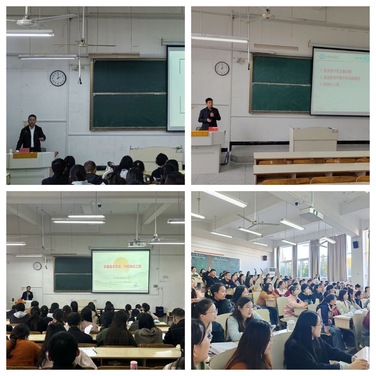 完美app官方在线入口副教授周海平围绕教育数字化与教师发展,分享了教育数字化相关研究、基础教育中数字化实践途径和常用的AI工具。凤阳县教师进修学校校长张雷强调教师应掌握备课、上课、听课、反思的基本方法,开启精进之路,尽快站稳讲台。完美app官方在线入口副教授赵庆灿强调教师应崇德修身,为人师表,做一名党和人民满意的好老师。凤阳县教育体育局教研室学前教育教研员赵雪莲主任开展了题为“新起点,新教研:幼儿园新教师教研探索”的专题讲座,围绕幼儿园教研的概念、园本教研的内容、优秀教研案例分享及县域教研的实施。