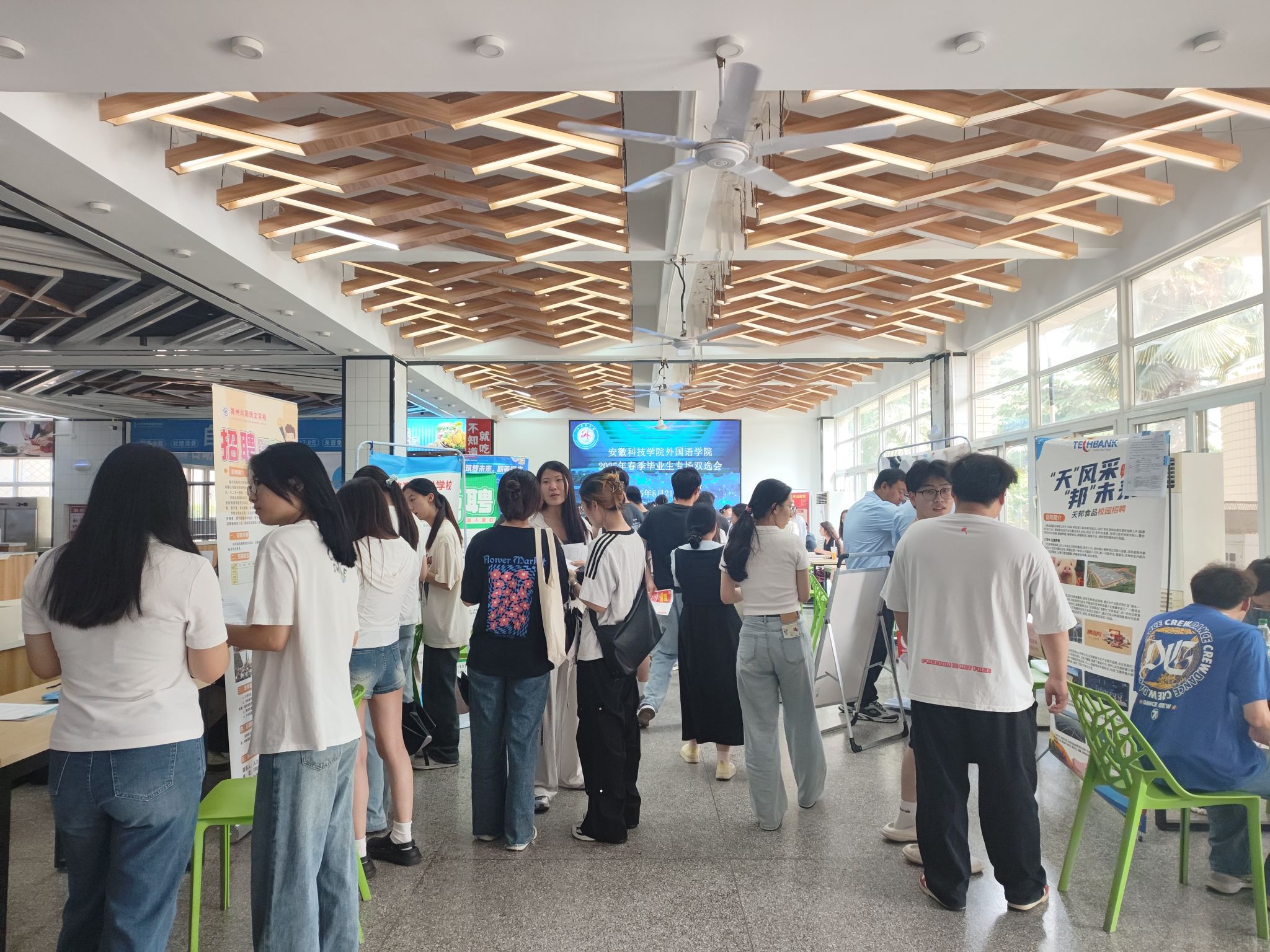 5月21日下午,外国语学院在东区食堂一楼成功举办2025届毕业生春季双选会。本次招聘会共吸引安徽鼎校教育科技有限公司、蒙城创新中学、芜湖中集瑞江汽车有限公司、天邦食品股份有限公司等30余家优质企业参会,提供高质量就业岗位300余个。