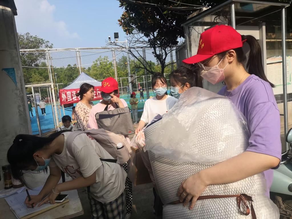 迎新现场,学生党员们佩戴党员徽章亮身份,负责引导新生报道,搬运新生行李过天桥直至亲自送到宿舍,帮助新生整理好床铺,指引新生采购公寓用品等工作。学生党员们带头冲在前面,从消杀通道接过家长手中的行李开始,撸起袖子肩扛行李,报道现场不断涌现出他们热情服务的场景,尤其是搬运行李中汗流浃背的身影,让新生感受到了外国语学院这个大家庭的温暖。学生党员就像一块块“砖”,哪里需要哪里搬,他们以实际行动发挥党员先锋模范作用,践行党员的初心使命,扎扎实实为群众办实事,让党旗在基层一线高高飘扬。