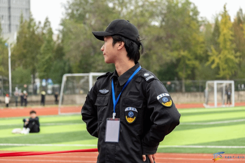 安全护卫队队员身穿马甲不惧寒风凛冽,坚定地拉住安全带维护着赛场秩序保护着运动员的安全。在平凡的岗位上,做好一件件小事,以行动来助推运动会的成功。