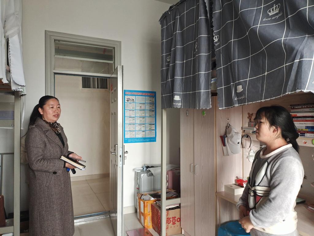 学院领导对学生宿舍内部的各设施完备情况进行了仔细检查,嘱咐同学们,春季天气渐暖,早晚要勤开窗,多通风;疫情防控期间,寝室长要定期给宿舍消毒,做好疫情防护工作,要带领舍友们适当锻炼,增强体质;同时,继续靠拢学习型宿舍、文明宿舍建设标准,创建干净、文明的公寓环境。对于部分寝室存在环境脏乱差和安全隐患的问题,检查人员也直接提出了批评,并明确要求限期整改,确保学生宿舍安全卫生。