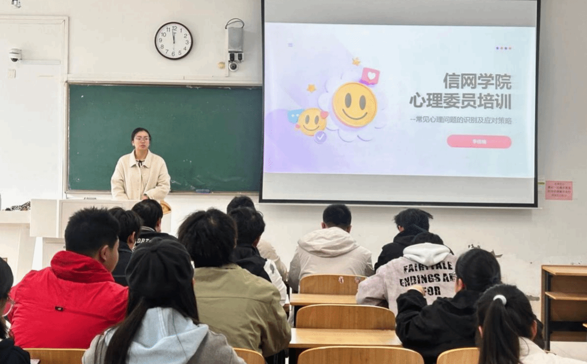 2025年11月6日,信息与网络工程学院在致A205开展新生班级心理委员专题培训,培训由学院心理负责老师李倩楠主讲。李倩楠围绕常见心理疾病的识别及应对策略做了重点培训。通过本次培训,促进了心理健康教育知识的普及,提高了心理委员对常见心理疾病的识别及预防,积极发挥心理委员在朋辈帮扶的互助作用,营造班级良好的心理健康氛围。