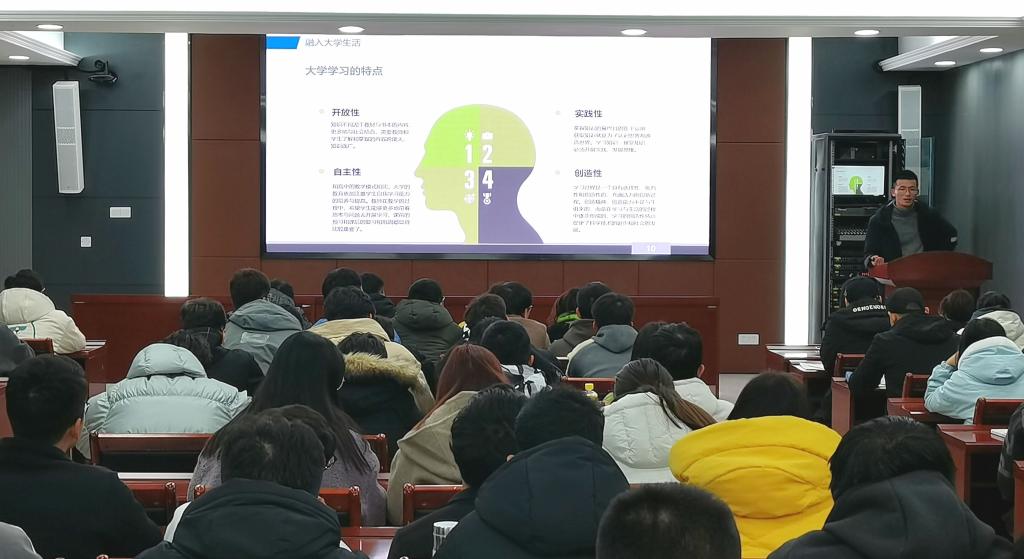 会上,陈凯围绕大学与大学精神、融入大学生活、做好大学生活规划和大学生就业规划四个方面展开论述。他指出,学业发展应着眼于未来,贯穿于学习、生活的始终,不断增加自我教育意识,明确学习目标,全面开发自我潜能,切实提高自身综合素质。同时,他分析了当下的就业形势,以及我院历届毕业生就业情况,鼓励学生调整好心态,树立正确就业观念,明确学习目标,学好专业知识技能,为今后的职业规划打下夯实的基础。最后,他强调“明其志,方能知所赴”,远大的理想总是建立在坚实的土地上的,青春短暂,时光荏苒,所以从现在起,好好规划一下学业,力争主动,相信自己一定能用绚烂的画笔去描绘生命的白纸,努力成为有理想、有本领、有担当的优秀青年。