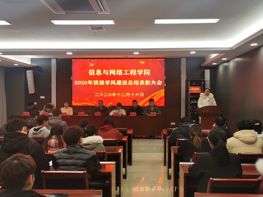 为表彰先进,选树优秀典型,持续推进学风建设再上新台阶。12月16日下午,信息与网络工程学院于图书馆西辅楼111召开2020年班级学风建设总结表彰大会。学院副处级辅导员韦乃学、院长助理何恩杰、党委秘书兼分团委书记杨晓宁、兼职辅导员赵海燕以及专职辅导员王培培、崔北坤、李军成、陈凯出席会议。学院2018级、2019级、2020级各班学生代表参加了本次会议,会议由王培培主持。
