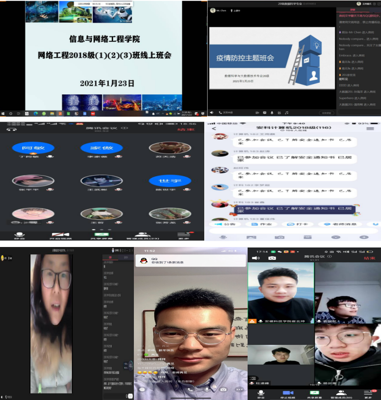 会议就学生的疫情系统填报、寒假学业规划及做好个人防护等工作展开线上教育指导。会上,各辅导员向同学们重申了《信息与网络工程学院寒假安全告学生书》中的八项安全注意事项:一要准确上报个人返乡及实习信息;二要严肃疫情系统填报;三要真实填报健康状况;四要做好自身防护;五要遵守属地及学校疫情管理规定;六要遵守学校返校规定;七要科学合理安排假期;八要牢固树立必胜信念。同时,各辅导员叮嘱学生们必须严格遵守所在地及学校的疫情防控要求,如有身体不适及其他异常,要及时就医并告知辅导员,在不经过学校允许的情况下不得私自返校。会议结束后,同学们纷纷表示:“他们将会严格遵守所在地及学校的疫情防控要求,用自己的实际行动弘扬正能量,积极配合学校完成疫情防控工作要求”。