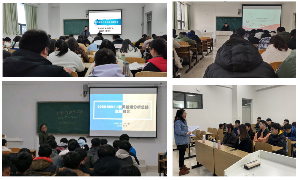为进一步加强班级学风建设,营造积极向上的学习氛围,开学前2周,信息与网络工程学院各班级陆续召开上学期学风建设分析总结主题班会,会议由各班级辅导员主持。