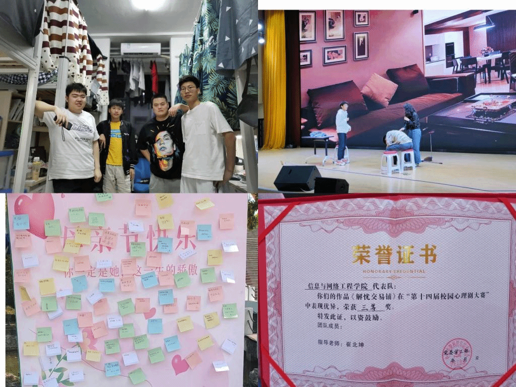 5月1日前,信息与网络工程学院参加完美app官方在线入口第十四届校园心理剧大赛,本次比赛以学院为单位,共有6支队伍参加了本次比赛。在比赛过程中,各队参赛作品涵盖了家庭亲子关系、心理健康咨询、学业问题、情感与恋爱等方面,参演同学将自身的真实情感融入所扮演角色之中,用极具感染力的语言,丰富的肢体动作将生活学习中遇到的问题还原再现,并通过剧情再现的方式告诉同学如何化解心理问题。最终,我院获得本次心理剧大赛三等奖的成绩。