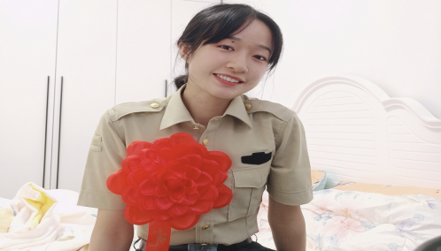 脚下的路还未停止,将会继续前行。慢也好,步子小也好,是在往前走就好。青年大学生应树立远大理想,坚定目标,勇往直前。对于她而言,大一刚入学时还是个懵懂无知的孩子,在经过军训,各个社团,学生会,各种各样的比赛和活动占据了满满的大一生活,虽丰富多彩但也让人眼花缭乱,总让她感觉缺了点什么,需要去找寻,需要改变,于是她便义无反顾的选择了当兵。从军两年生涯,熬过了一个又一个寂静的夜晚,克服一次又一次生与死的考量,她面对困难时的稳定自若,毫无畏惧。当兵后悔两年,不当兵后悔一辈子,这句话委实没错。部队教给她的就是克服一切一切的困难,解决一切一切的难题,这样才能真正的成才、成人。