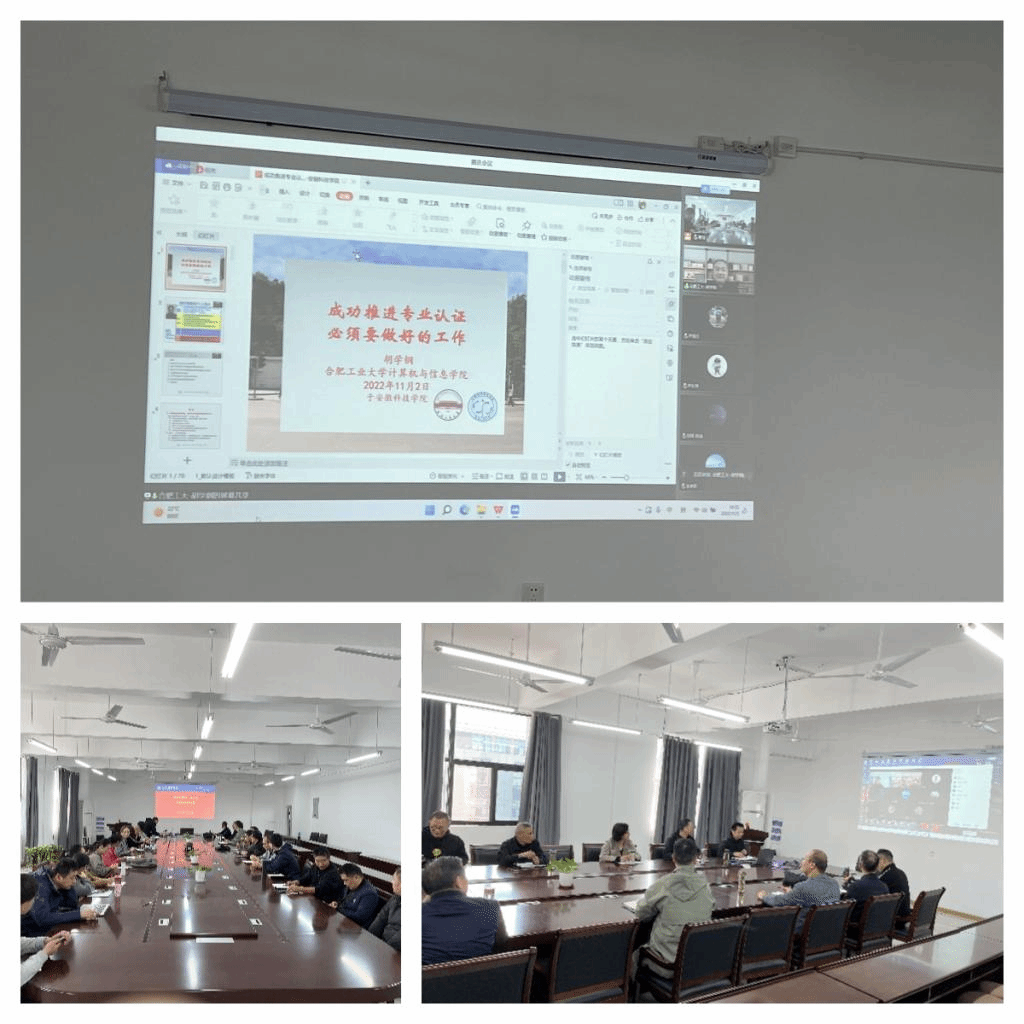 进一步推进计算机科学与技术专业专业认证工作,112日下午,信息与网络工程学院在尚行楼B418召开专业认证报告会会议邀请安徽省高校计算机教育研究会理事长、合肥工业大学胡学钢教授“成功推进专业认证必须要做好的工作”的报告信息与网络工程学院全体教师参加了会议,会议由院长余宏杰主持。