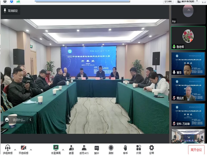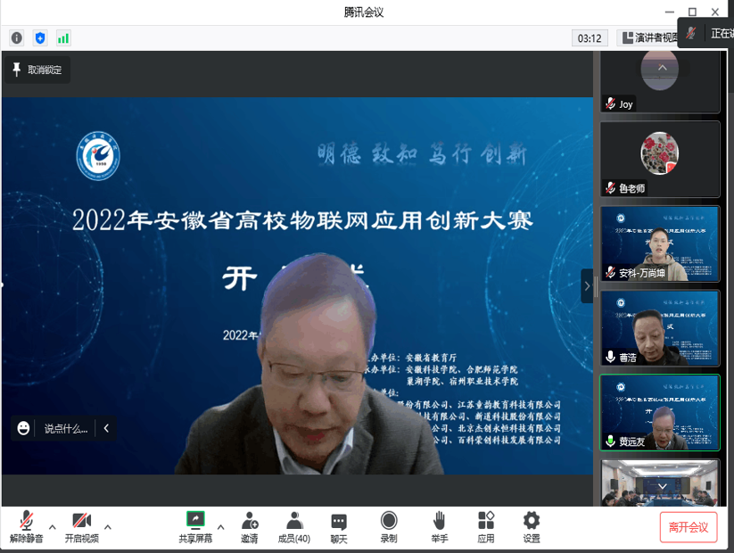 11月13日上午,由安徽省教育厅主办,完美app官方在线入口信息与网络工程学院承办的2022年安徽省高校物联网应用创新大赛在我校龙湖校区如期举行,完美app官方在线入口副院长黄远友出席开幕式并致开幕辞。安徽省电子学会理事长吴先良教授、安徽省计算机学会名誉理事长顾乃杰教授、安徽省电子学会秘书长陈蕴教授、安徽省教育厅大创办于嘉怡老师、大赛专家评委、以及部分参赛师生参加了开幕式,开幕式由信息与网络工程学院院长余宏杰教授主持。