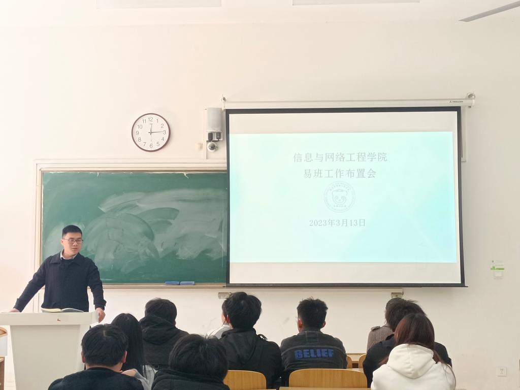 为加强易班工作建设,发挥易班网络思政育人功能,3月13日中午,信息与网络工程学院在致知楼C105召开期初易班工作布置会,学院党委副书记、纪委书记韦乃学、易班工作站全体成员、21级和22级各班易班班长参加会议,会议由易班指导老师李军成主持。