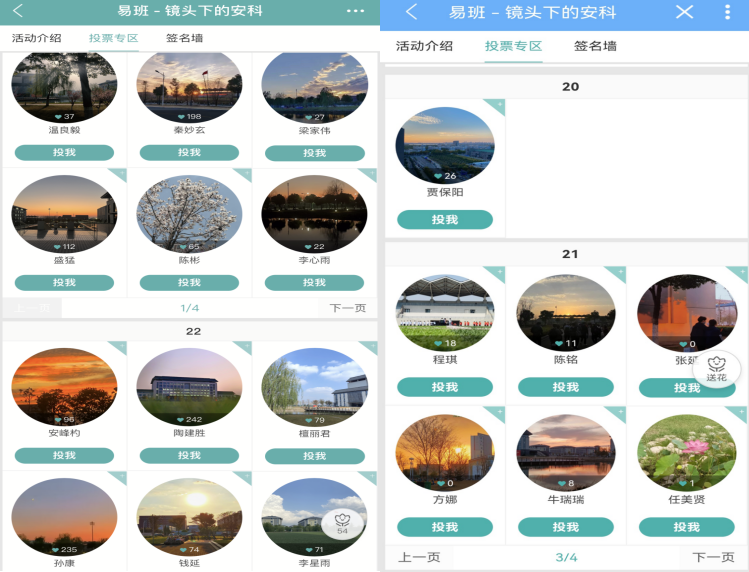 本次比赛采用易班网络投票和评委老师评分相结合的方式进行评比,共计筛选出75件作品进入决赛,作品以“寻觅校园景,缘系安科情”为主要采景内容。同学们用手中的镜头以不同视角,将在安科的日常生活、学习、校园美景以及感人至深的瞬间记录下来。有考研学子“长风破浪会有时,直挂云帆济沧海”的夜色奋战;有安科荷塘“夕阳美如画,清风醉晚霞”的晚景之美;还有“等闲识得春风面,万紫千红总是春”的春意桃花等;一张张被定格成永恒美好记忆的照片,记录了最美安科的校园美景,记录了安科学子青春活力、顽强拼搏的精神风貌。
