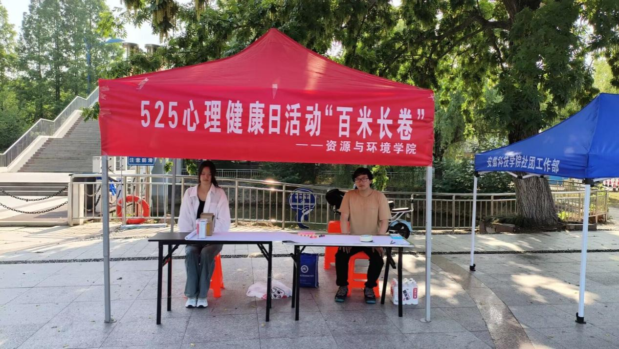 为了传播更多有关心理健康方面知识,保持同学们的良好心理状态,资源与环境学院于5月25日于西区天桥下小广场线下摆点进行活动宣传。