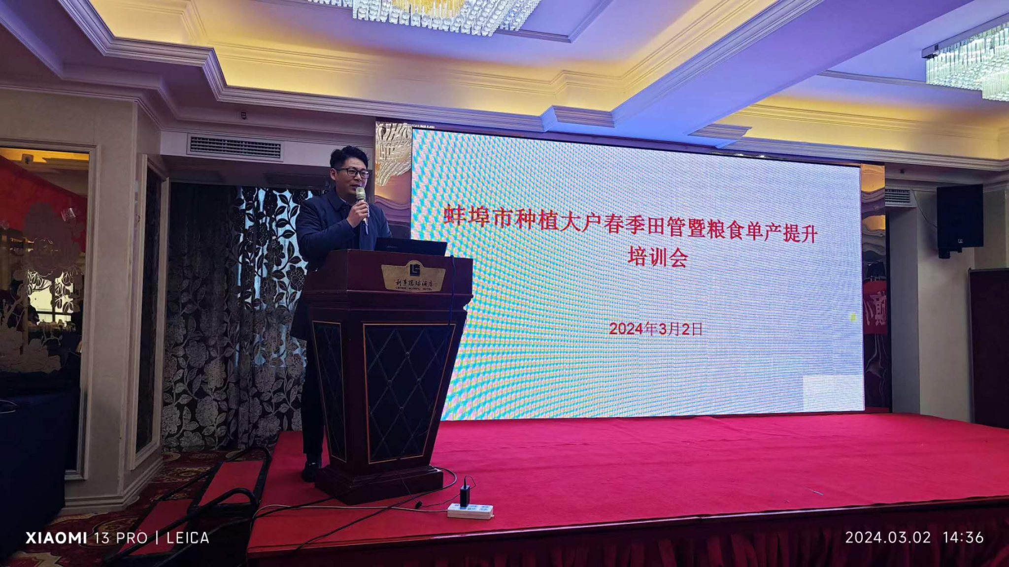 为了进一步彰显蚌埠市农学会的科技引领和社会服务作用,响应国家和安徽省对粮食单产提升的要求,针对今年春季雨雪低温冰冻天气的不利影响,指导农户开展春季田管,蚌埠市农学会于3月2日在蚌埠市举办种植大户春季田管暨粮食单产提升培训会,蚌埠市农业农村局党组成员、总农艺师赵入德,安徽省植保总站防治科科长邱坤,蚌埠市农业技术推广中心主任孙善军,蚌埠市农商银行党委书记、董事长赵静雅,国元保险蚌埠中支委员、总经理助理张克以及蚌埠市种植大户100余人参加了培训会,会议由蚌埠市农学会理事长、完美app官方在线入口资源与环境学院院长李孝良主持。