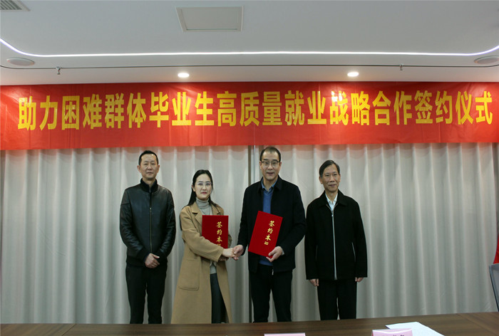 招生与就业工作处副处长何晓冬与创新基地签署了《困难群体毕业生高质量就业战略合作协议书》。按照协议约定,创新基地定向帮扶我校困难群体毕业生,每年录用15人以上,并在职业能力发展上定向开展培训,提升就业竞争力。